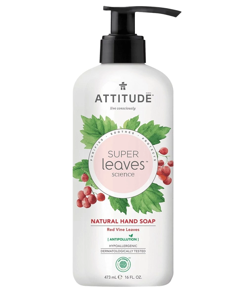 Az ATTITUDE Super Leaves™ természetes kézszappan a benne található, regeneráló hatású vörös szőlőlevél kivonatnak és a közismerten szennyezésgátló hatású moringa mag kivonatnak köszönhetően hatékonyan megtisztítja a kezeid és közben puhává és hidratálttá varázsolja azokat. Az EWG-minősített és bőrgyógyászatilag tesztelt folyékony kézszappanunk növényi és ásványi összetevőkkel készül, és tanúsítottan vegán termék. A bogyós gyümölcsökre emlékeztető természetes aromáját is kedvelni fogod!
