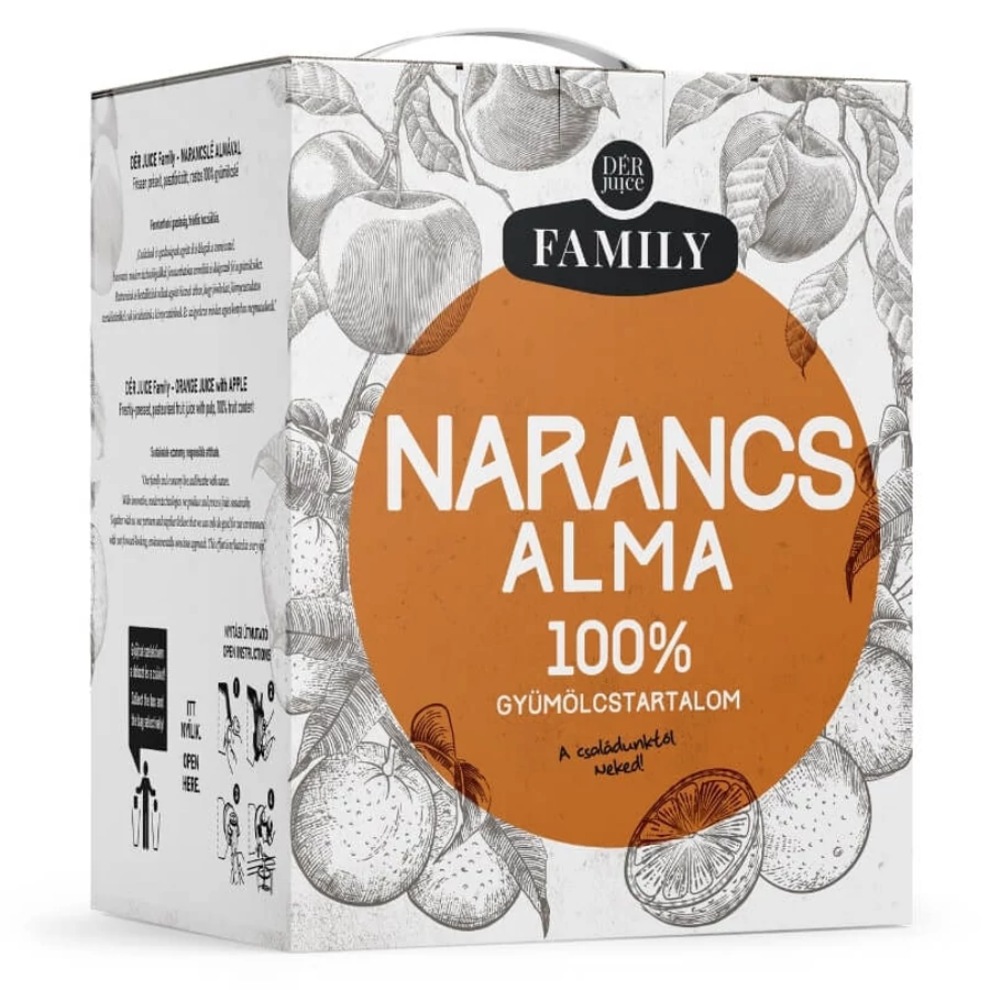 100% gyümölcstartalmú, selymesen lágy natúr narancslé Derecske almával.